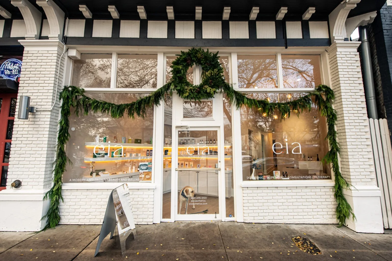 Maybe I should say it was more like throttling myself—because we signed the lease on beautiful N. Highland Avenue, and within 28 days we were open and seeing patients. What was once the Green Flamingo is now eia (Ezratty Integrative Aesthetics). Our neighbors have been wonderful in welcoming us, especially Brad Scoggins, the co-owner of Little Barn Apothecary and Green Flamingo, which conveniently moved just down the block. I love the sense of community in our quaint little corner of Atlanta—from neighbors like Dakota J. to Moosh, everyone has been welcoming. Brad even put up our holiday decorations for us and sent us welcome flowers. I love how we’ve been absorbed into a tight-knit community so quickly, and I know that I made the right choice when I said yes to this space.